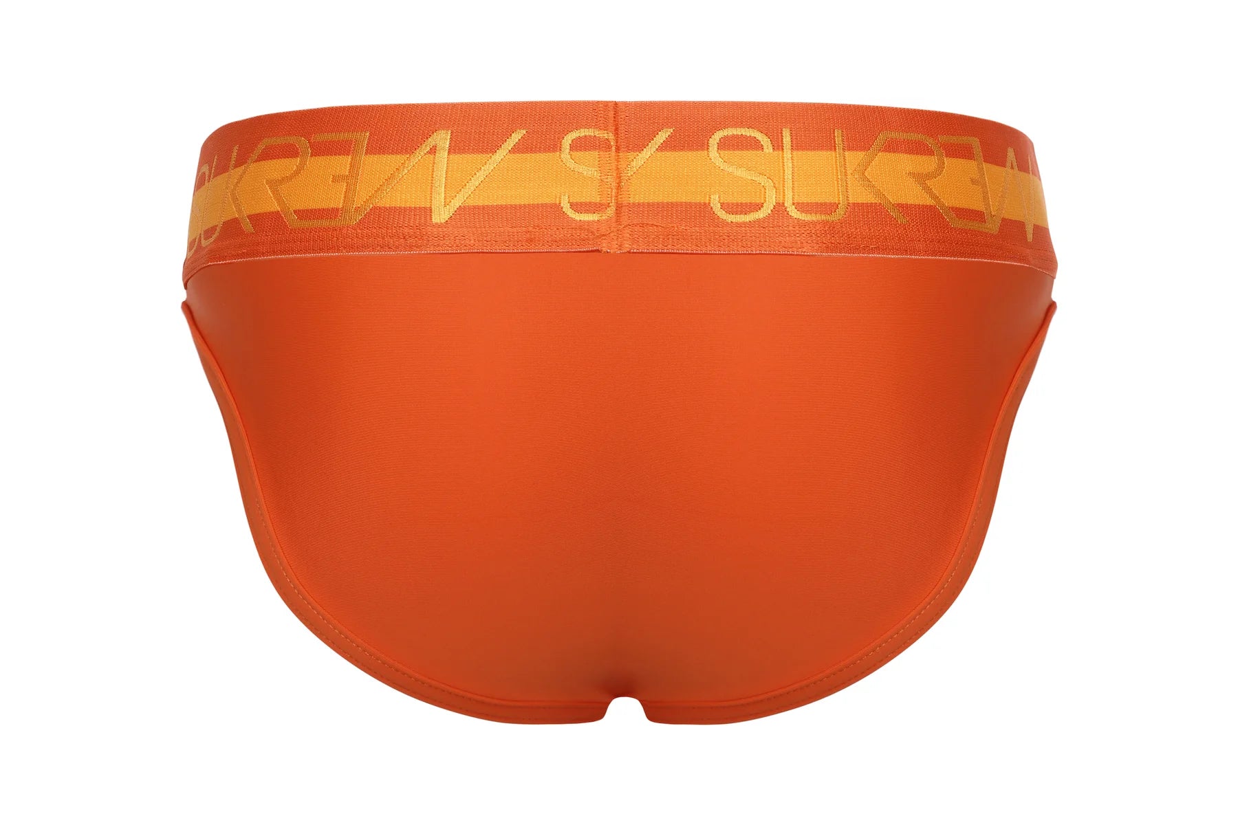 - Thick 5cm jacquard SUKREW branded waistband in eye-catching Jaffa Orange & Neon Orange (63% polyester, 22% polyamide, 15% elastane) adds bold flair and secure hold