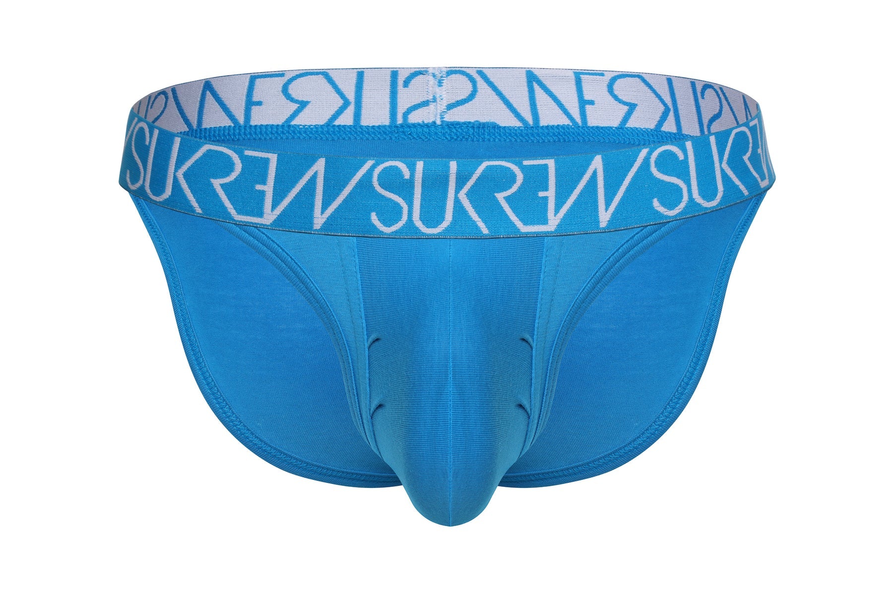 - Slim 3.5cm jacquard SUKREW branded waistband in Azure & White (47% polyamide, 37% polyester, 16% elastane) adding a stylish pop